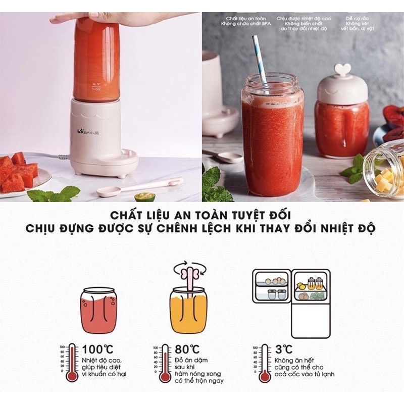 Máy xay 3 cối Bear LLJ-C04J1 (GR-B03V1) xứng đáng là máy xay ăn dặm đa năng nhất dành cho bé. Với công suất 200W mạnh mẽ kết hợp với 3 lưỡi xay - tương ứng với 3 cối khác nhau, máy xay 3 cối Bear có thể xay đa dạng các loại thực phẩm: từ thịt tươi sống cho đến các loại hạt cứng, rau, củ quả và trộn các loại sinh tố.✔️ MIX - Cốc xay 300ml, lưỡi dao 4 chiều, đảm nhiệm vai trò trộn/xay sinh tố, hoa quả, làm sữa lắc