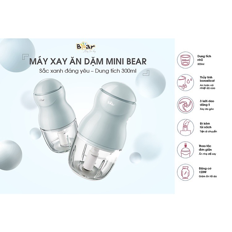 Giới thiệu Máy xay đa năng Bear GR-B03V2 0,3L cho bé ăn dặm máy xay mini cầm tay Bear chính hãng bản quốc tế BH 18 tháng