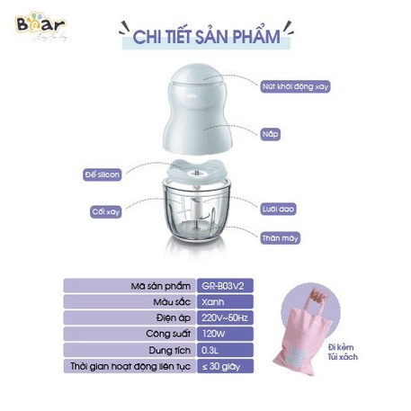 Máy xay đa năng Bear GR-B03V2 0,3L cho bé ăn dặm máy xay mini cầm tay Bear chính hãng bản quốc tế BH 18 thángBản Quốc Tế bảo hành 18 tháng, bản Nội Địa bảo hành 6 tháng nha các mẹ