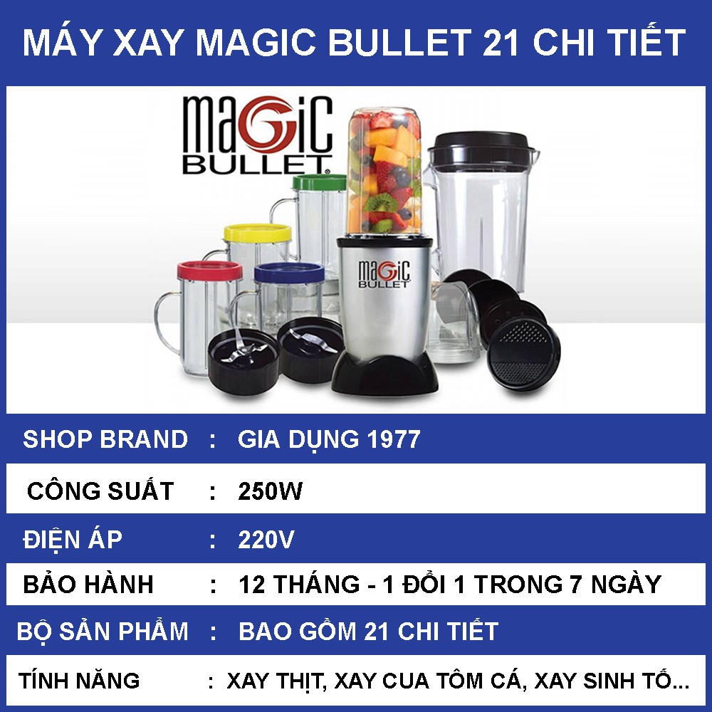 Máy Xay Đa Năng Cao Cấp Magic Bullet 21 Chi Tiết, Máy Xay Đa Năng Công Suất Lớn Xay Đá, Xay Thịt, Xay Cà Phê Xay Sinh Tố
