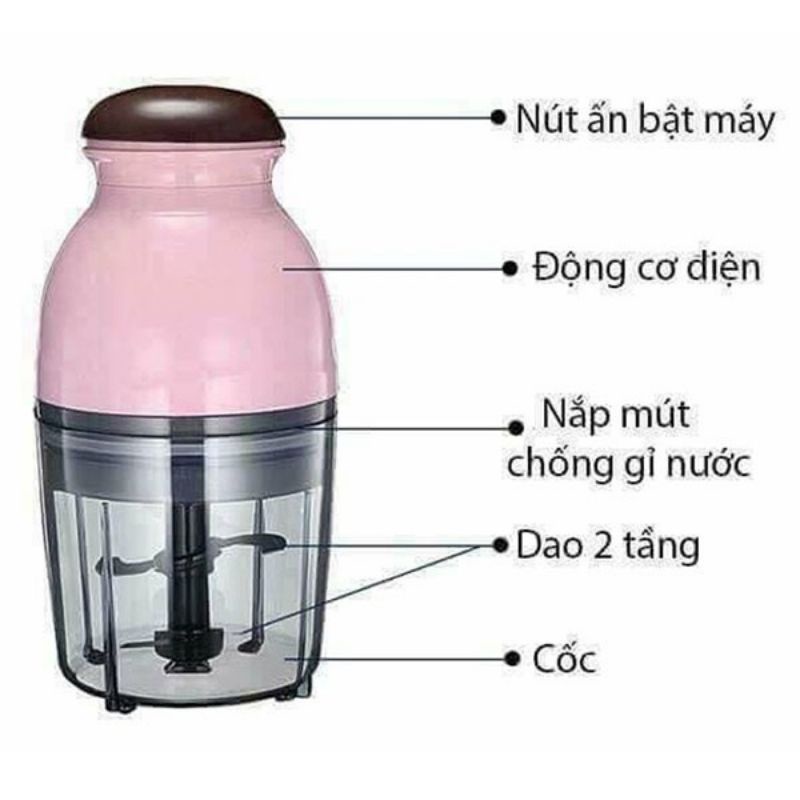 ➡ Thiết kế nhỏ gọn, đơn giản với lưỡi cắt kép, giúp xay nhanh hơn. Thực phẩm sẽ không bị mắc kẹt bên dưới lưỡi cắt như những loại máy xay khác. Lưỡi cắt có thể được lấy ra rất dễ dàng