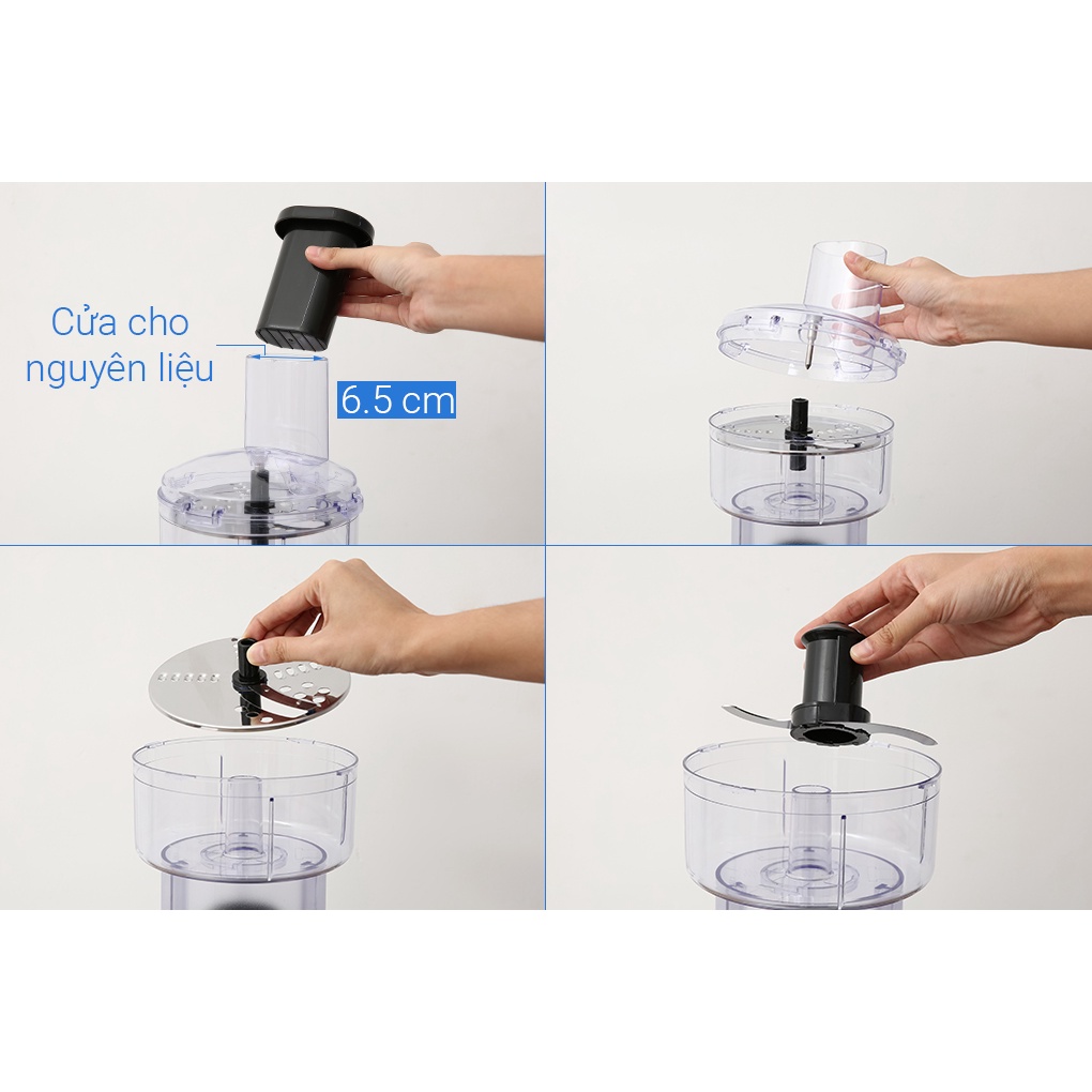 Máy có 7 chế độ: Xay, trộn, nghiền, cắt nhỏ, ép trái cây, cắt lát và băm nhỏ cực kì tiện lợi khi chế biến thức ăn.