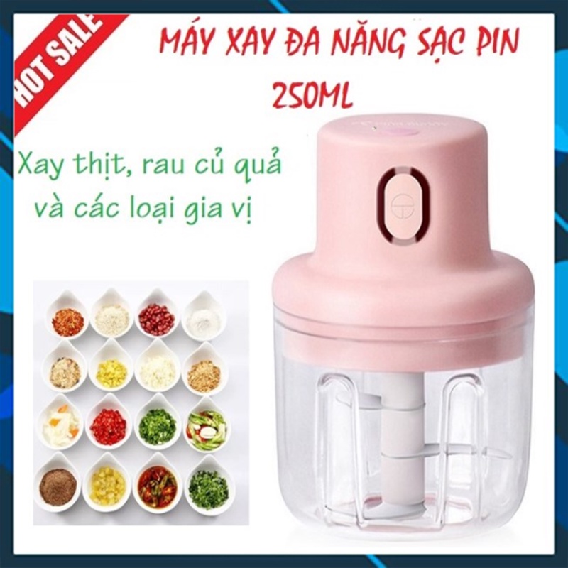 Máy Xay Đa Năng Hành, Tỏi, Ớt 250ml ⚡FREESHIP⚡ Mini Cầm Tay, Có Sạc Pin, Máy Xay Thịt, Xay Rau, Củ, Quả Tiện Lợi
