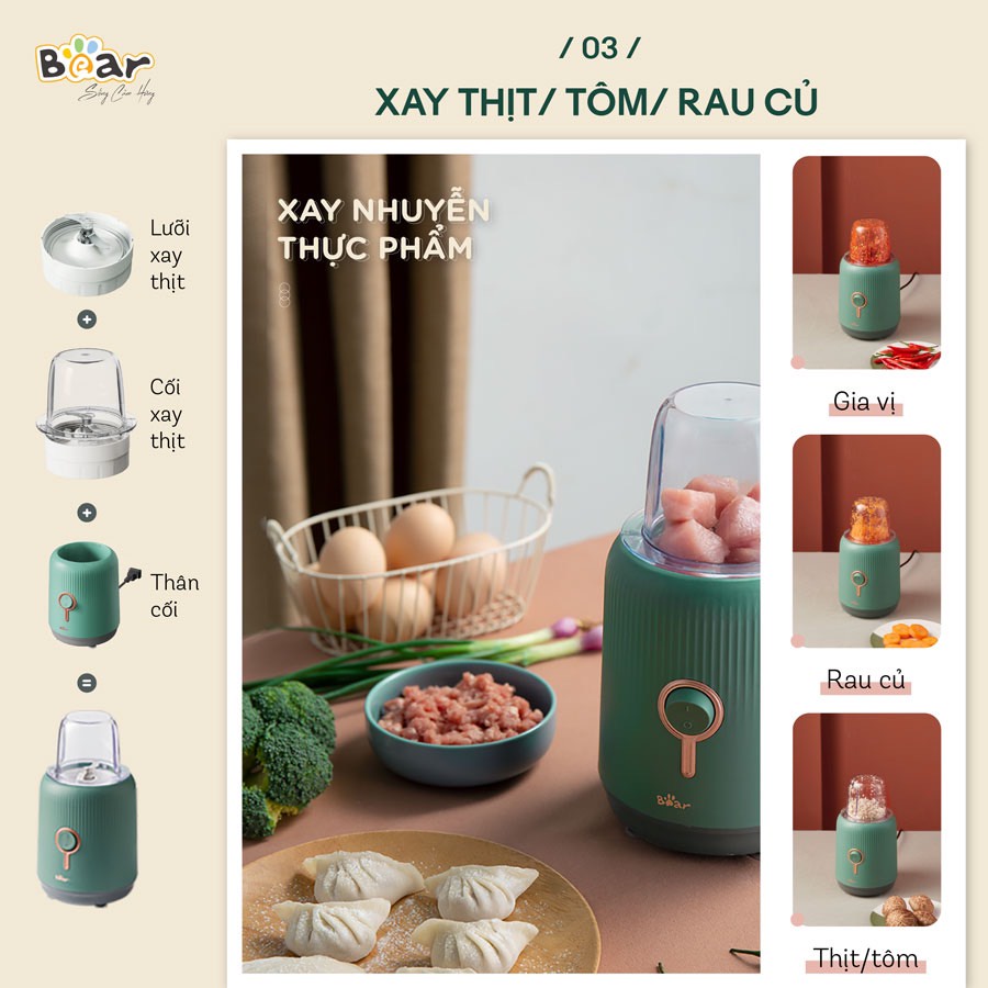 Giới thiệu Máy Xay Đa Năng, Máy Xay 3 Cối Bear BL-B10V2 Tích Hợp Xay Sinh Tố, Xay Thịt, Xay Ăn Dặm