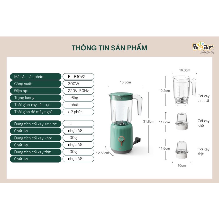 Giới thiệu Máy Xay Đa Năng, Máy Xay 3 Cối Bear BL-B10V2 Tích Hợp Xay Sinh Tố, Xay Thịt, Xay Ăn Dặm