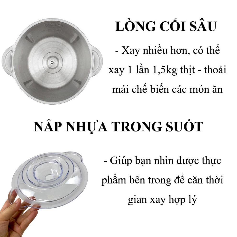 Cối xay thủy tinh có dung tích 1.2L, sức chứa tốt, lòng cối sâu, dùng để xay thịt và rau củ, đáp ứng tốt yêu cầu của người dùng.