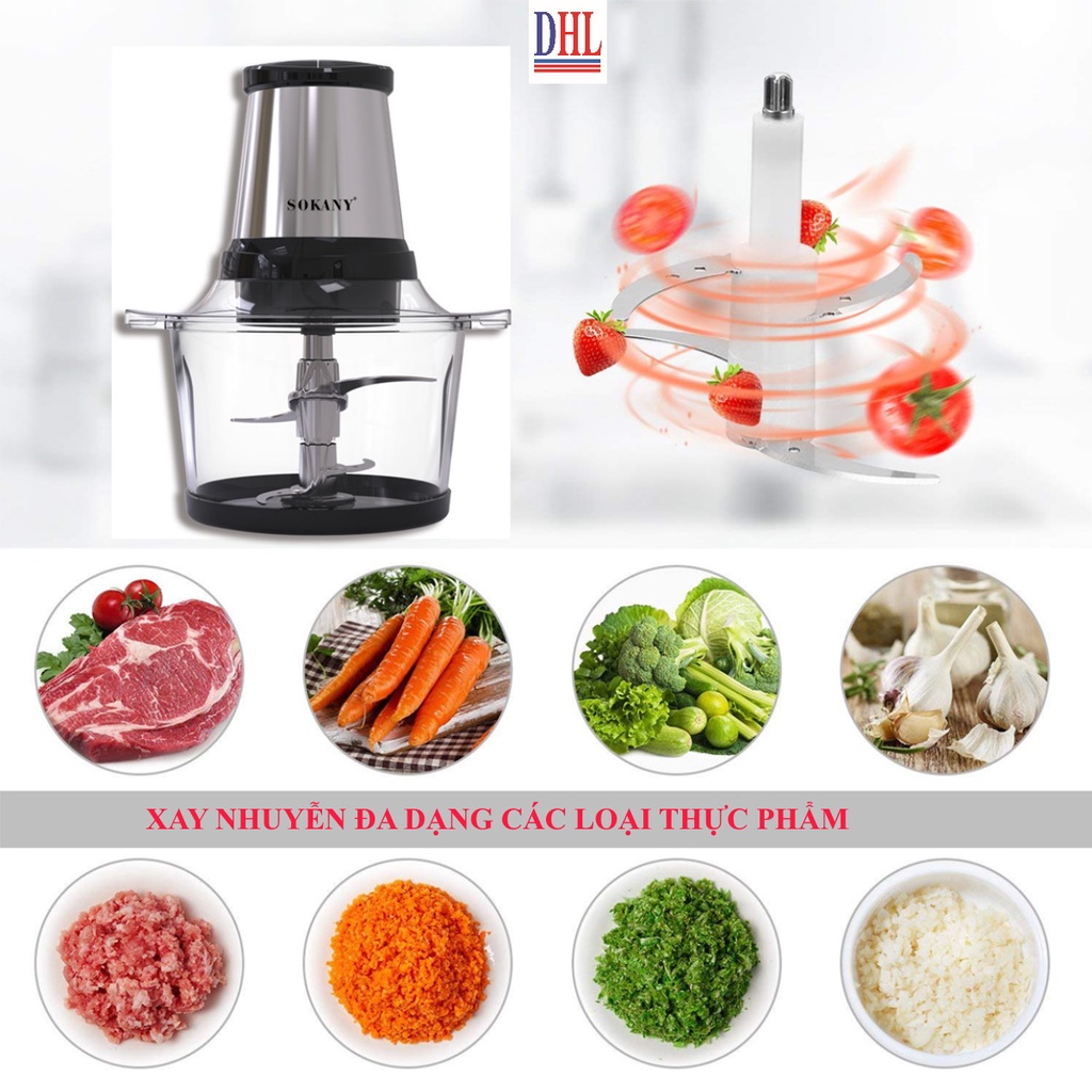 Máy xay đa năng, máy xay thịt SOKANY LB7004A 2.0L cao cấp chính hãng bảo hành 12 thángTặng kèm một lưỡi dao máy xay thịt 2l