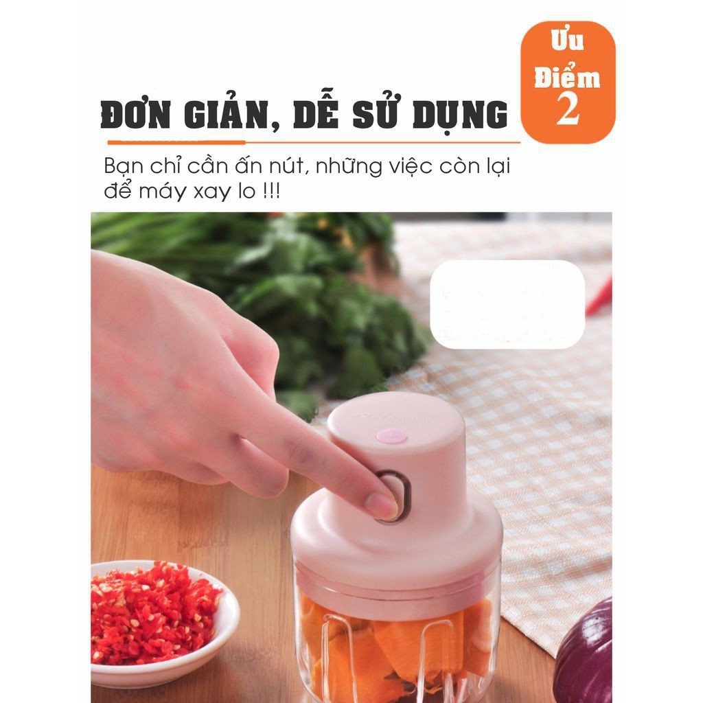 Máy Xay Đa Năng, Máy Xay Tỏi Ớt Mini Cầm Tay Sạc Pin Nhỏ Gọn Dung Tích 250ml (Nhỏ gọn - Tiện Lợi - An toàn)