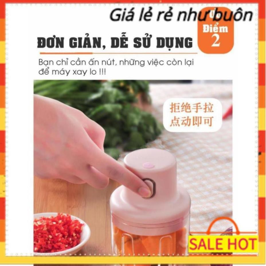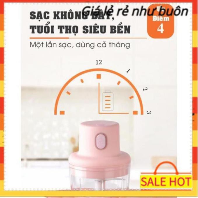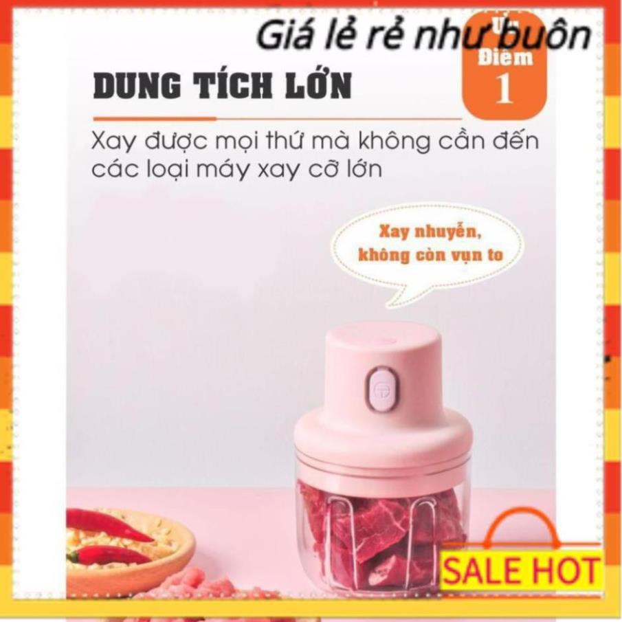 Máy xay đa năng mini cầm tay xay thịt gia vị tỏi ớt rau củ kèm dây sạc dung tích 250ml