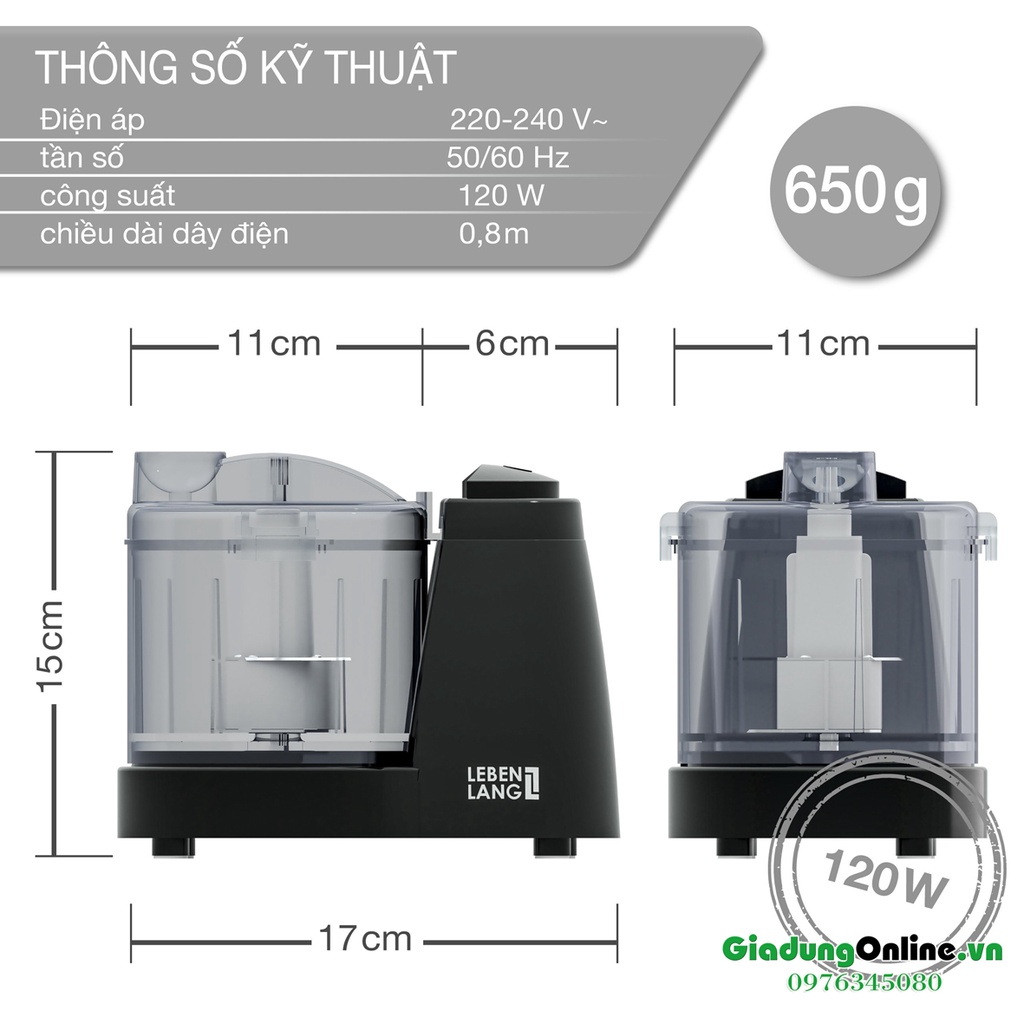 Thiết Bị Điện Gia Dụng > Đồ gia dụng nhà bếp > Máy chế biến thực phẩm & Xay thịt || Máy Xay Đa Năng Mini LEBENLANG BLU5239 Xay Thịt, Hành, Tỏi, Ớt, Rau Củ 350ml Bảo Hành 2 NămCòn hàng