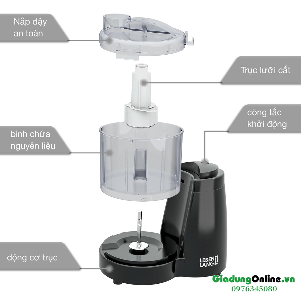 Giới thiệu Máy Xay Đa Năng Mini LEBENLANG BLU5239 Xay Thịt, Hành, Tỏi, Ớt, Rau Củ 350ml Bảo Hành 2 Năm