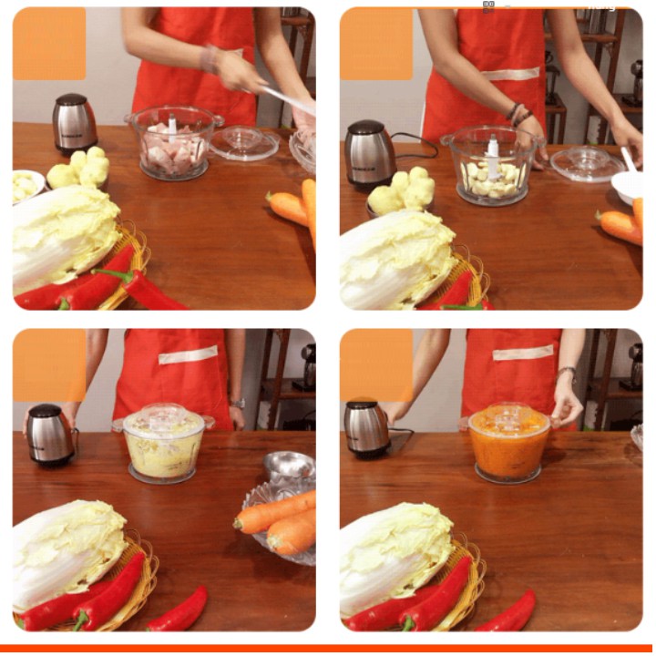 Hướng dẫn sử dụngCho thịt, rau củ vào bát chứa thủy tinh sau đó lắp đầu máy vào và khởi động