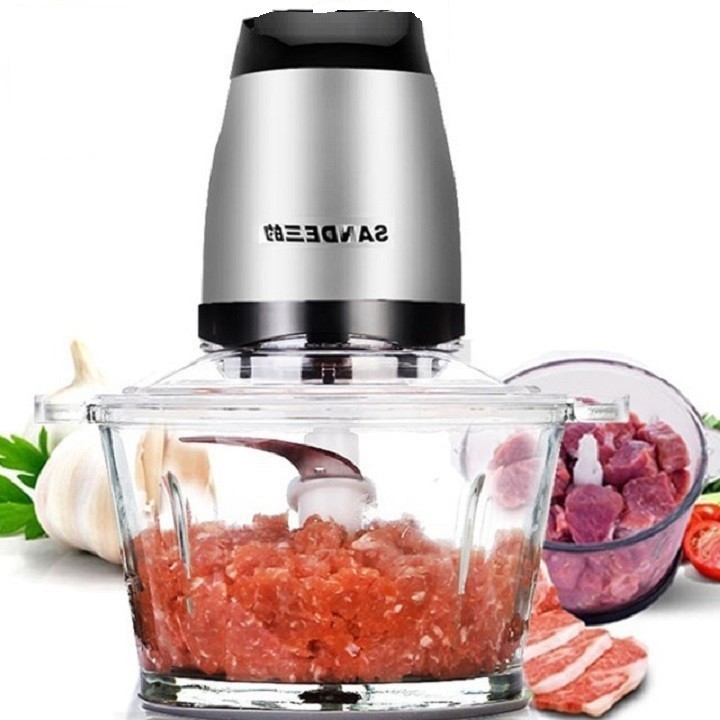 Máy xay thịt đa chức năng Sandee giúp các bà nội trợ hiện đại chế biến thức ăn thật dễ dàng và nhanh chóng, lại đảm bảo an toàn thực phẩm tối đa trong quá trình chuẩn bị nguyên liệu chế biến. Máy có công suất 200W kết hợp với lưỡi dao inox giúp xay thịt và các loại hạt, củ quả nhuyễn mịn mà tuyệt nhiên không làm thất thoát chất dinh dưỡng có trong thực phẩm.Với thiết kế 4 dao cắt xoắn ốc 4 chiều kèm với động cơ mạnh mẽ giúp xay nhuyễn mọi loại thịt chỉ trong 8sDung tích chứa lên đến 1.2L thoải mái xay các loại thịt - rau củ - gia vị - đồ khô Cối xay trong suốt dầy 7mm siêu bền Tiết kiệm thời gian chế biến gấp nhiều lần so với thông thườngKhông gây tiếng ồn như các máy xay thông thườngDễ dàng vệ sinh chùi rửa sau khi sử dụngChất liệu cao cấp đạt chuẩn an toàn cho thực phẩm và người tiêu dùng