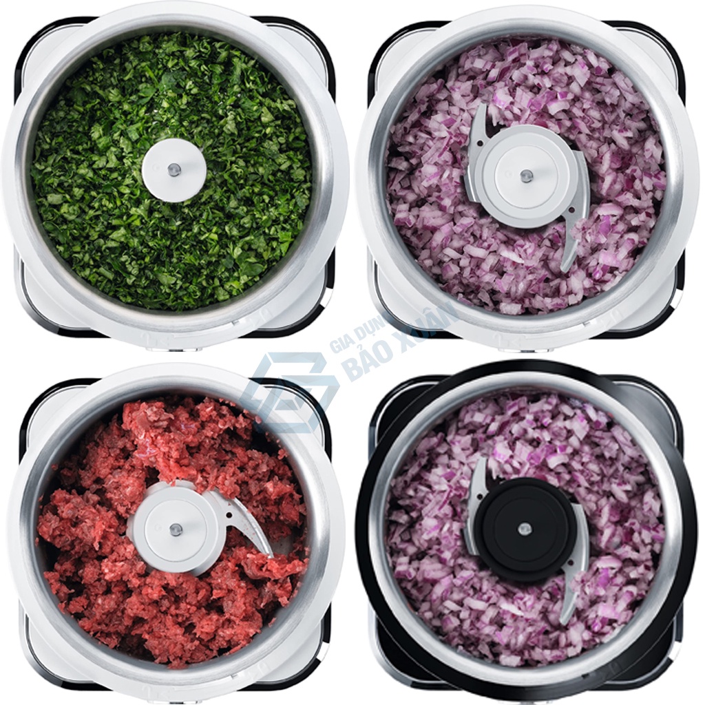 Công suất xay khỏe 500w và dung tích cối xay inox 500 ml, xay thịt, hành tây, thảo mộc và các loại hạt cực nhuyễn trong thời gian ngắn, ngoài ra cũng dễ dàng để chế biến nước sốt hoặc pesto