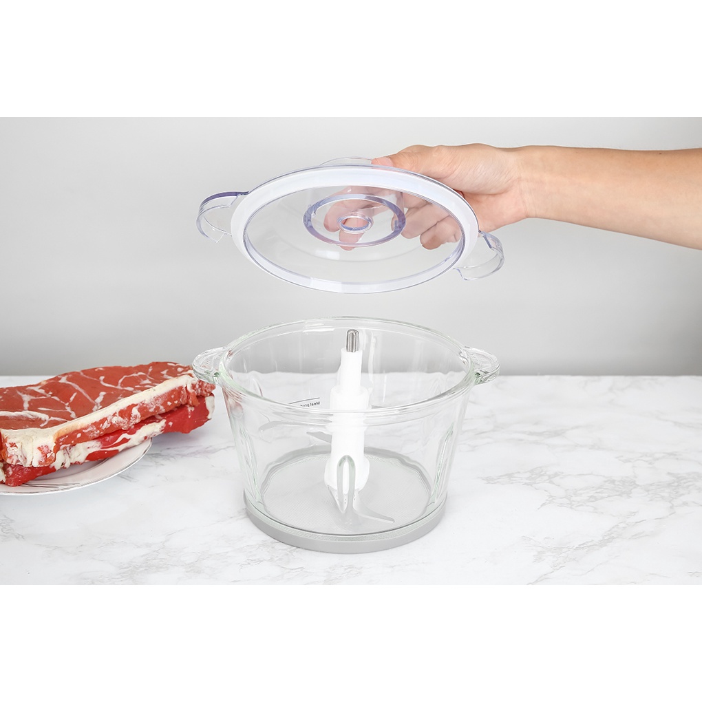 Đặc biệt, có phần cối xay thịt được làm từ chất liệu thủy tinh cao cấp, có độ bền cao với khả năng chịu va đập tốt, không trầy xước hay nứt vỡ khi xay ở tốc độ cao, dễ vệ sinh, chùi rửa sau mỗi lần sử dụng. Hơn nữa, sản phẩm được thiết kế với bộ lưỡi dao kép (4 lưỡi) thông minh và được làm bằng inox 304 siêu bền chống gỉ sét, tạo nên lực cắt mạnh và độ sắc bén nhanh chóng. Đặc biệt lưỡi dao của có thể xay được 1kg thịt chỉ 30s.