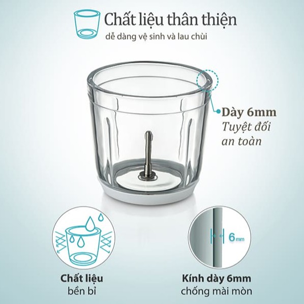 - Cốc xay dung tích 0.6L phù hợp cho hầu hết các nhu cầu trong gia đình. Cùng lưỡi dao sắc và thiết kế đặc biệt giúp đảo đều thức ăn khi xay. Cốc xay được làm từ thủy tinh, đáy cốc có đệm cao su đảm bảo ít va đập trong quá trình sử dụng.