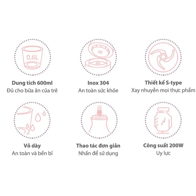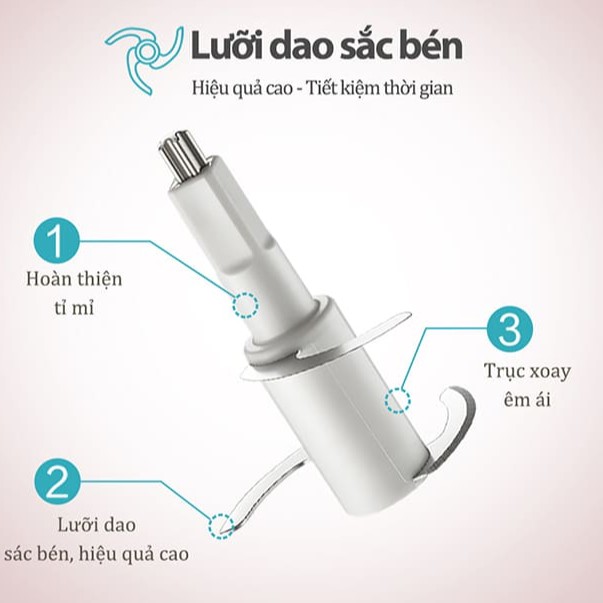 - Thiết kế đơn giản với cốc xay và lưỡi dao tháo rời, dễ vệ sinh, thanh thế phụ kiện khi cần thiết. Phù hợp cho các mẹ sử dụng xay đồ ăn dặm cho bé cũng như làm các món xay cho cả gia đình.