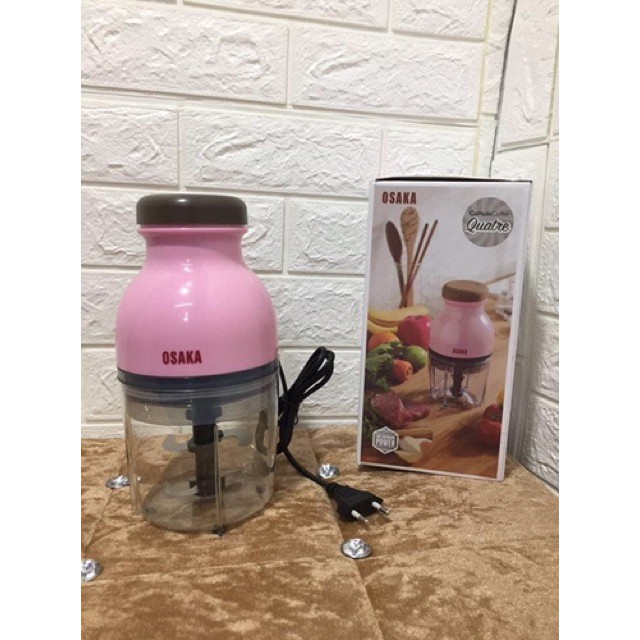 - Máy xay sinh tố Osaka hoạt động mạnh mẽ với công suất 350W, 3 mức tốc độ kết hợp với lưỡi dao sắc bén, giúp xay nhuyễn đá và các loại trái cây. Máy gồm 1 cối xay nhựa dung tích 700ml .