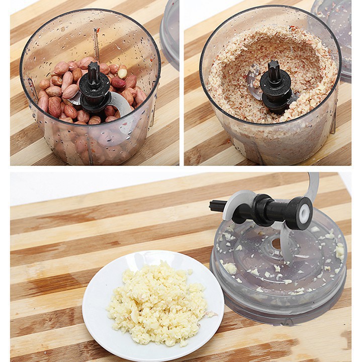 ❶ Gồm 3 phần chính, 1 motor với 2 cấp độ xay, 1 cối chứa thịt xay bằng nhựa, 2 lưỡi dao tác động kép.