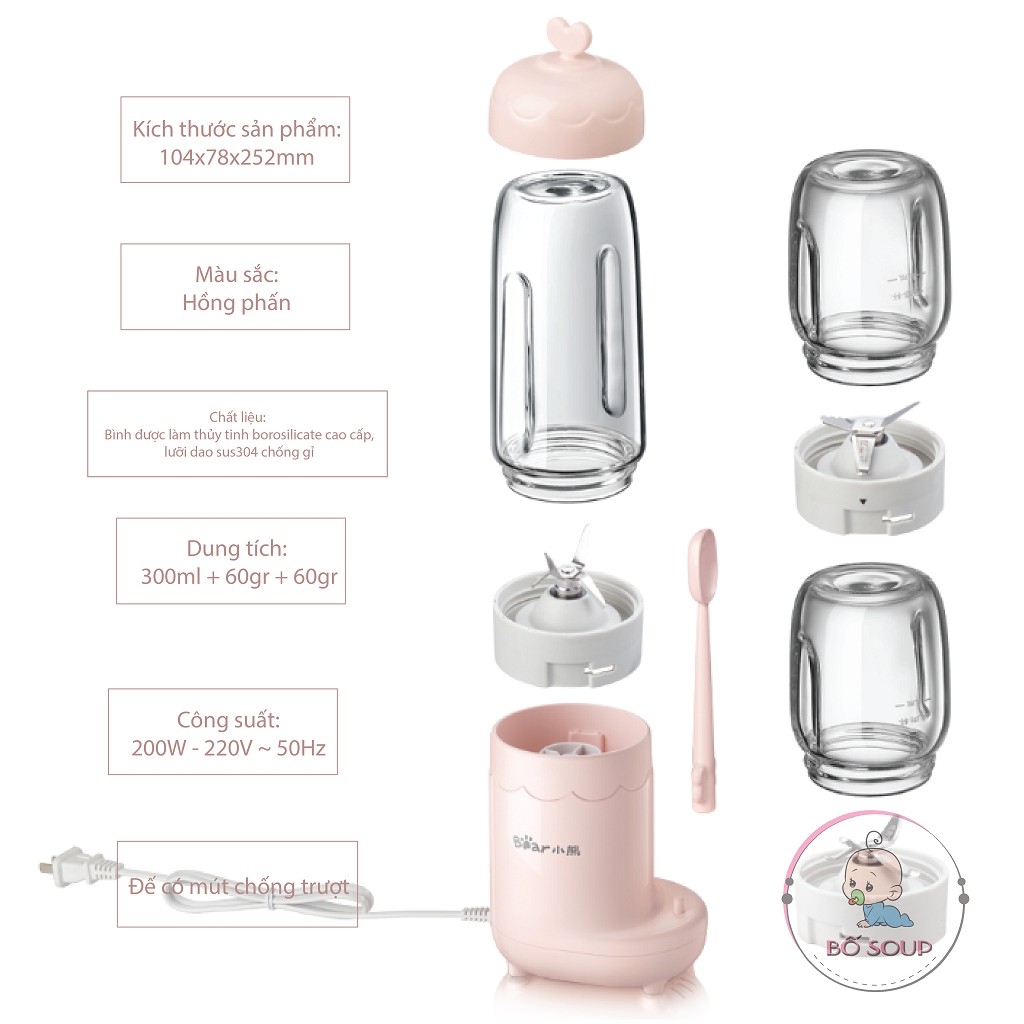 Giới thiệu Máy Xay Đồ Ăn Dặm Cho Bé Bear 3 Cối Thuỷ Tinh [Hàng Chính Hãng Bảo Hành 18 Tháng ]