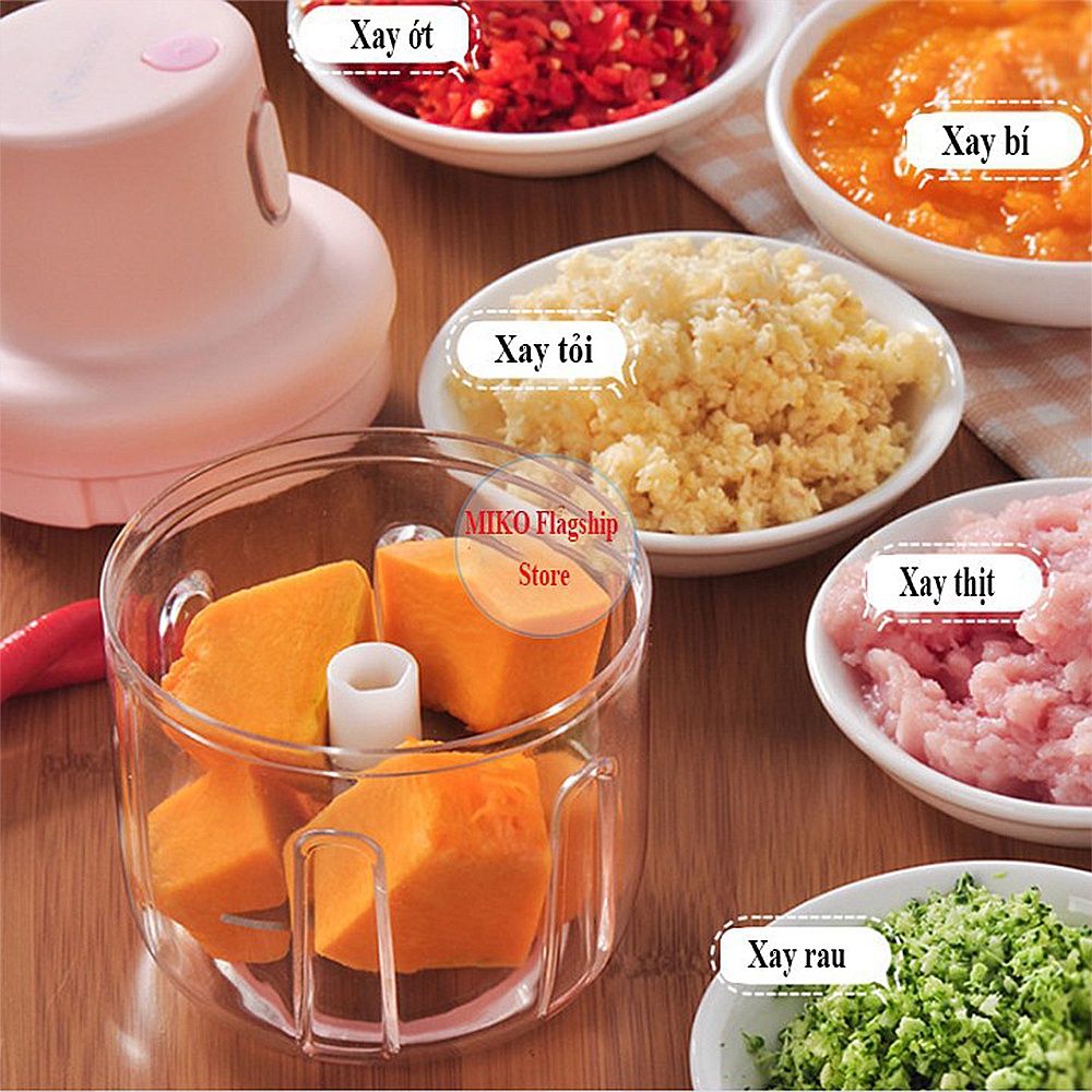 Máy Xay Đồ Ăn Dặm Cho Bé Mini Sạc Điện,, Máy Xay Tỏi Ớt Đa Năng Nhỏ Gọn Dễ Sử Dụng, Xay Hành, Tỏi, Rau Củ
