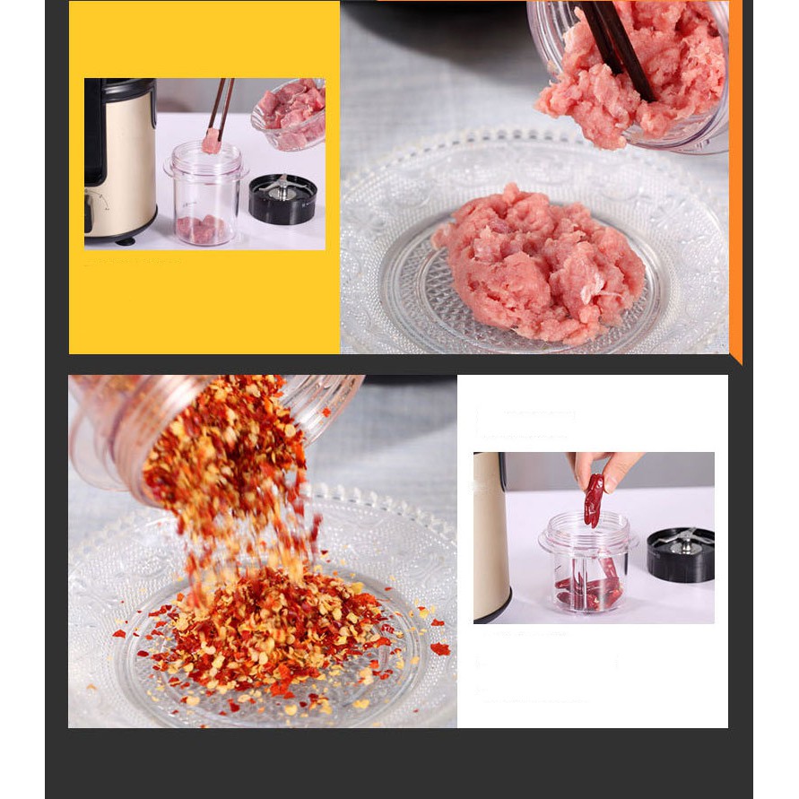 Cối xay khô: Bằng đế dao 2 lưỡi bạn có thể nghiền nhỏ các thực phẩm khô như gạo, đậu tương, cafe, vừng,...