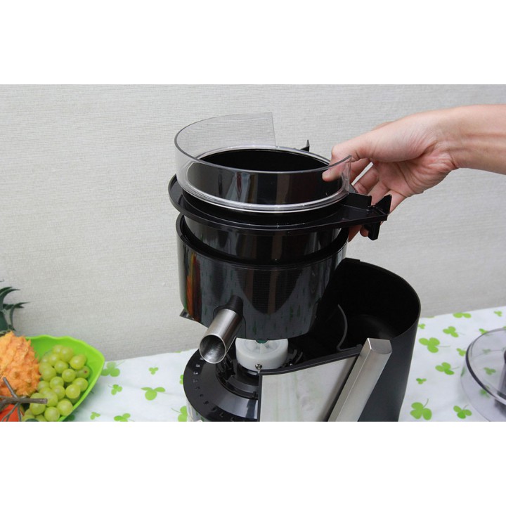 Dao cắt hình chữ S của Máy ép trái cây kim loại cố định trái cây vào đúng vị trí trong khi ép và lực ly tâm hoạt động để đẩy bã ra. Thiết bị này ép hiệu quả hơn vì trái cây không quay. Dao cắt góc thấp giúp ép hết nước trong trái cây và Lưới lọc mắt nhỏ lọc hết bã ra khỏi nước trái cây vì vậy bạn luôn chế biến được loại nước giải khát sảng khoái.