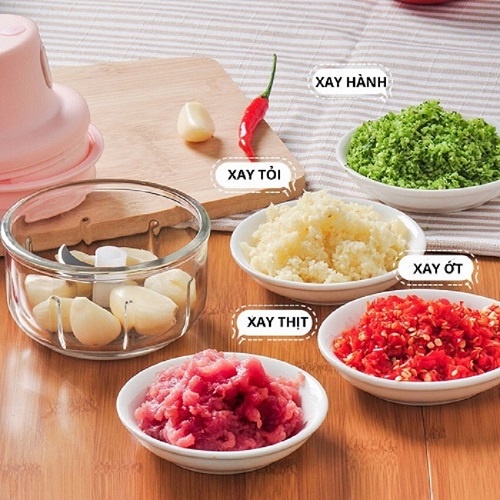 - Chức năng: Băm nhỏ tỏi, gừng, ớt, đậu phộng, óc chó, ...