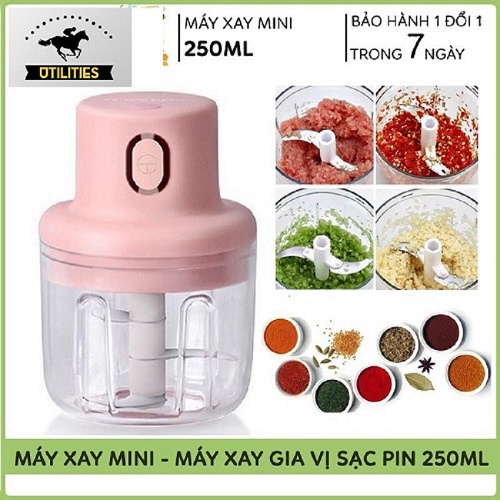Thiết Bị Điện Gia Dụng > Đồ gia dụng nhà bếp > Máy chế biến thực phẩm & Xay thịt || [𝒇𝒓𝒆𝒆𝒔𝒉𝒊𝒑] Máy xay gia vị hành tỏi ớt mini, say sinh tố bằng điện sạc pin bằng tay 250ML - 45W - 3 lưỡi dao rất an toànCòn hàng
