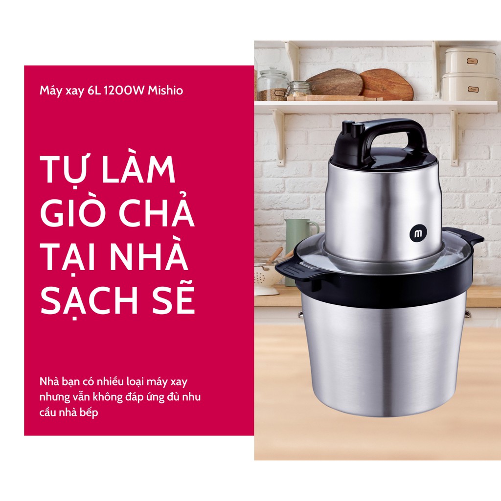 Giới thiệu [Mã ELHADEV giảm 4% đơn 300K] Máy xay giò chả 6L Mishio MK279 1200W inox 304