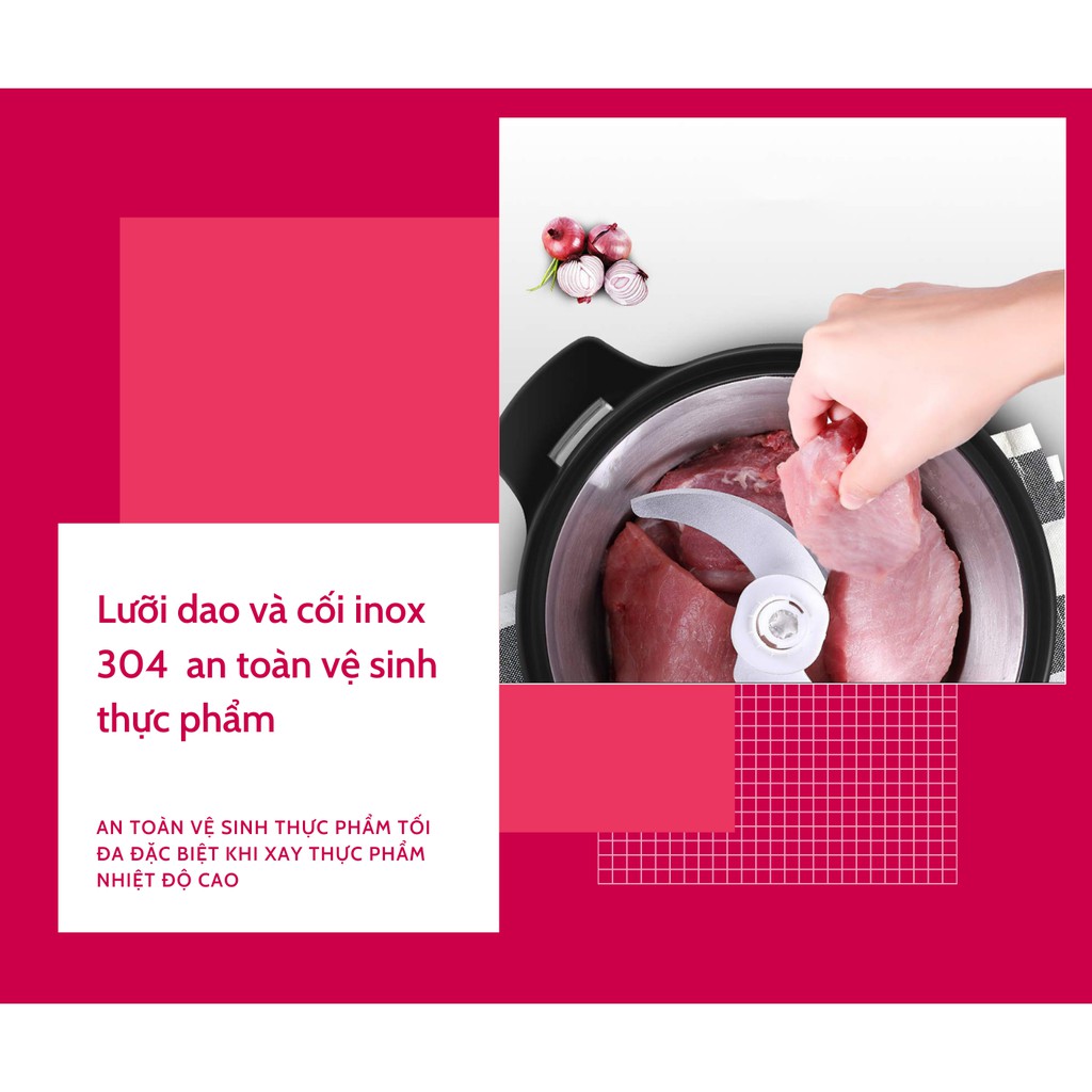 - Chức năng chính: Xay gia vị: Hành, tỏi, ớt, hạt ngũ cốc, Xay rau củXay thịt