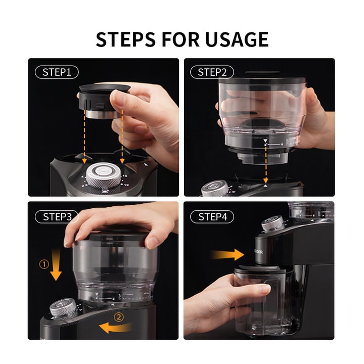 Máy xay hạt cà phê cao cấp Shardor CG845B- Xoay và ấn 6s đối với bột thô, 10 giây đối với bột trung bình, 15 giây đối với bột mịn