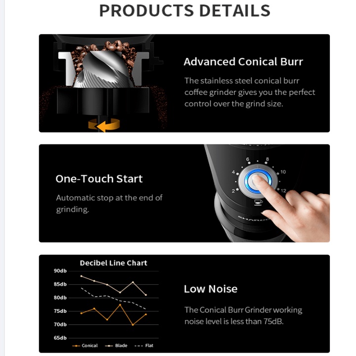 Thiết Bị Điện Gia Dụng > Đồ gia dụng nhà bếp > Máy pha cà phê & Phụ kiện || Máy xay hạt cà phê cao cấp Shardor CG845BCòn hàng