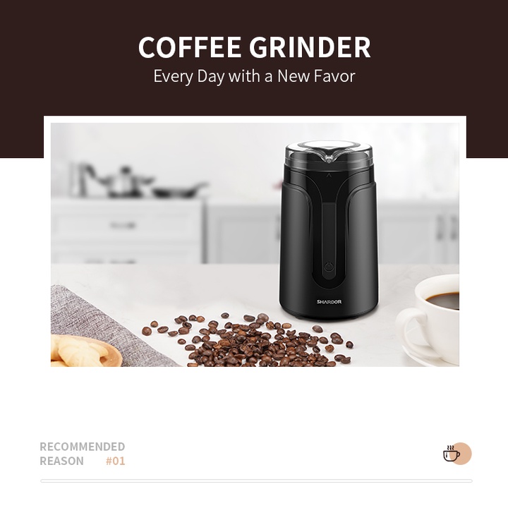 - Máy xay cà phê Shardor CG515B có vỏ bọc nhựa ABS cao cấp, được thiết kế hiện đại, nhỏ gọn và dễ dàng sử dụng, có lưỡi dao được làm bằng thép không gỉ cao cấp cùng động cơ 150W mạnh mẽ, giúp bạn xay mịn hạt cà phê hay các loại hạt ngũ cốc một cách nhanh chóng mà vẫn đảm bảo giữ được hương vị và chất lượng của thực phẩm.