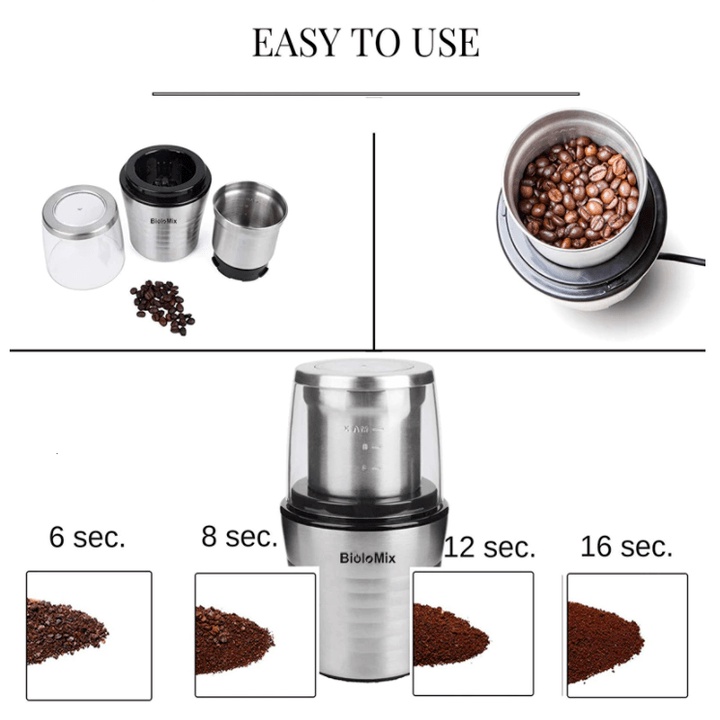 Máy xay hạt cà phê và gia vị 2 trong 1 Biolomix BCG300- Nhãn hiệu: Biolomix