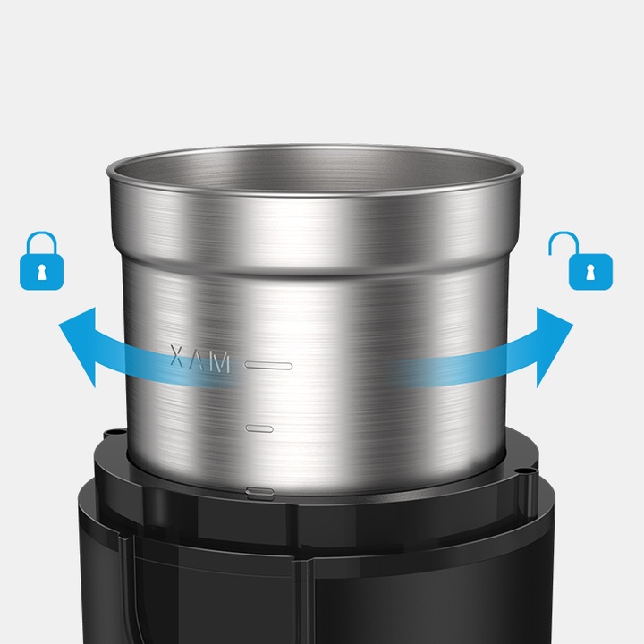 - Hướng dẫn xay: Ấn và giữ 6s đối với bột thô, 10 giây đối với bột trung bình, 25 giây đối với bột mịn.