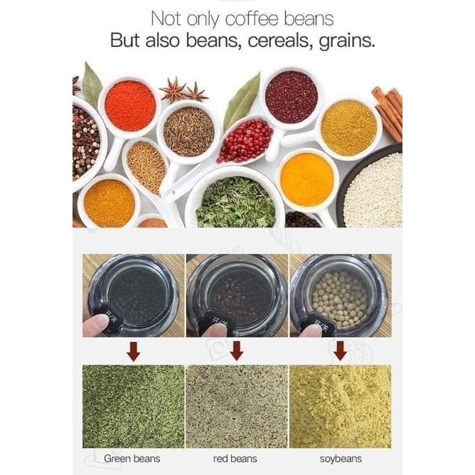 👉Máy nghiền hạt đa năng có thể nghiền các loại hạt như cà phê, ngũ cốc, gia vị , thảo dược.