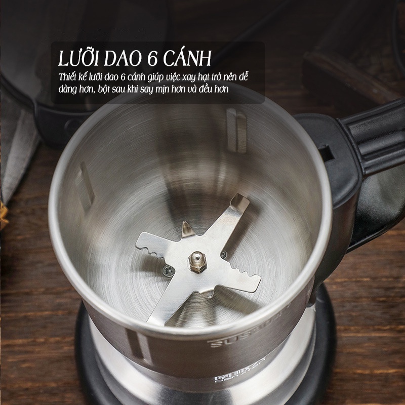 Thiết Bị Điện Gia Dụng > Đồ gia dụng nhà bếp > Máy ép, Xay sinh tố & Máy làm sữa đậu nành || Máy Xay Hạt Khô KOEN Công Suất 300W Lưỡi Dao 6 Cánh Dùng Để Xay Hạt Khô Và Các Loại Gia VịCòn hàng