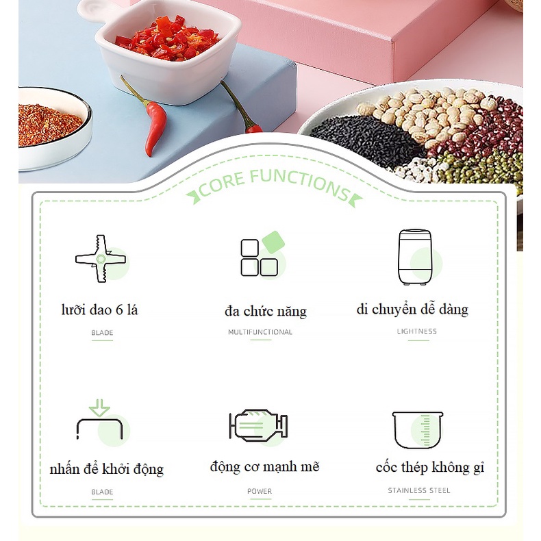 Thiết Bị Điện Gia Dụng > Đồ gia dụng nhà bếp > Máy chế biến thực phẩm & Xay thịt || Máy xay hạt, ngũ cốc khô loại dao 6 lưỡi GhosnCòn hàng