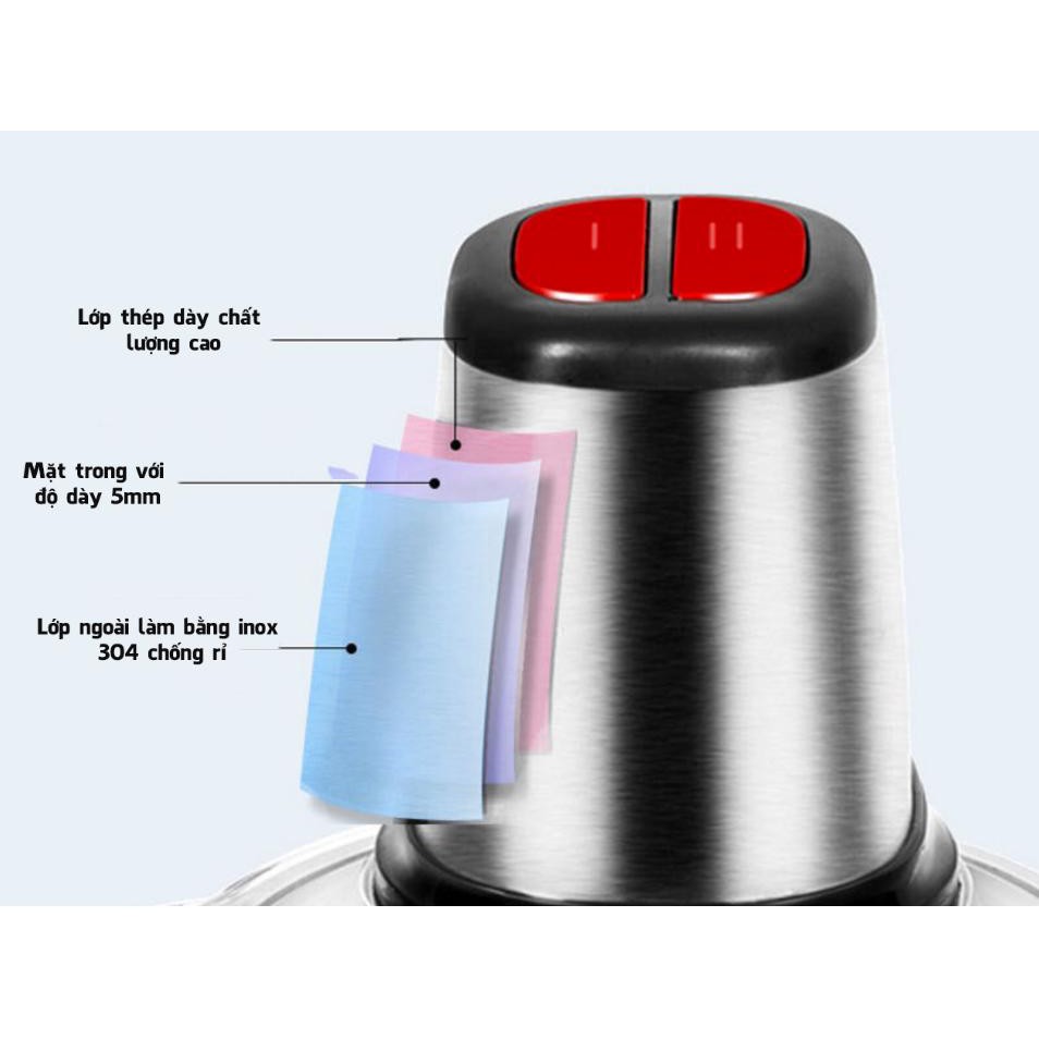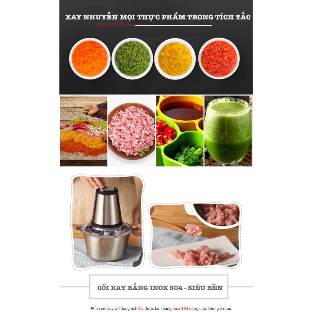 Phần cối xay với dung tích 2L, được làm bằng inox 304 cứng cáp, không rỉ màu