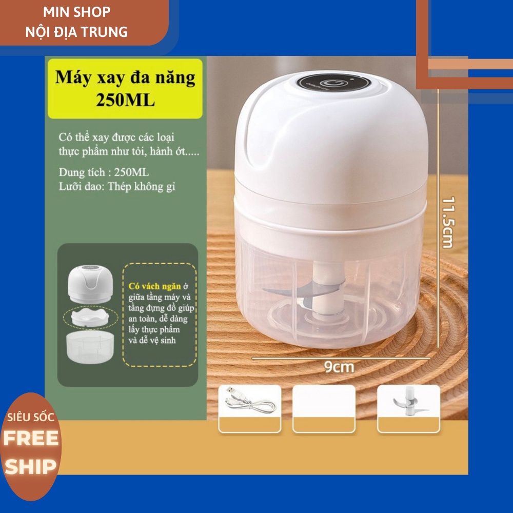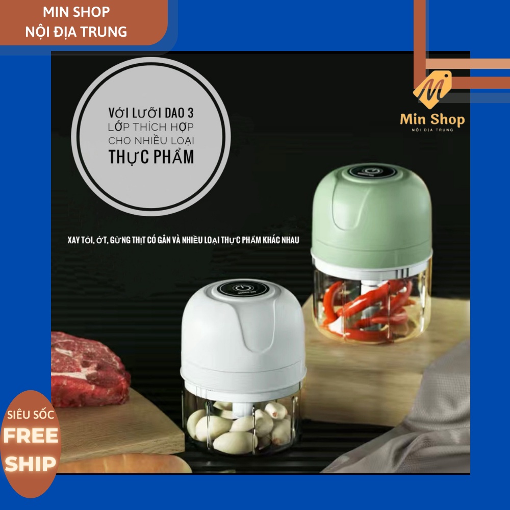 Máy Xay, Máy Xay Tỏi Ớt Mini Cầm Tay Siêu Tiện Lợi 3 Lưỡi Dao Cao Cấp 250ML