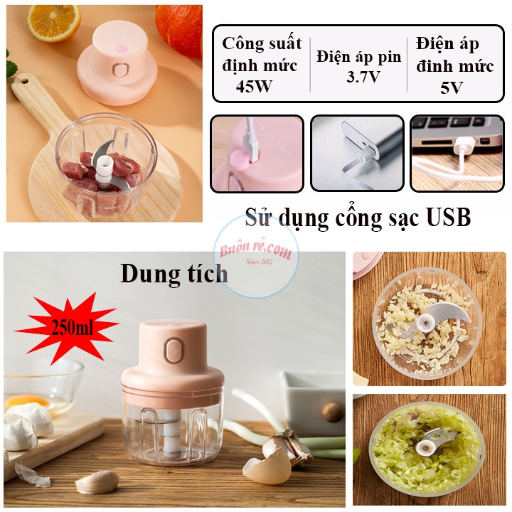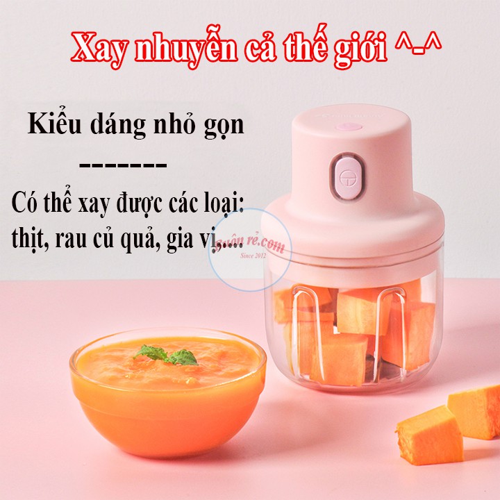 Máy xay mini 250ml cầm tay đa năng xay tỏi ớt, hành, rau củ quả, Cao Cấp sạc điện nhỏ gọn