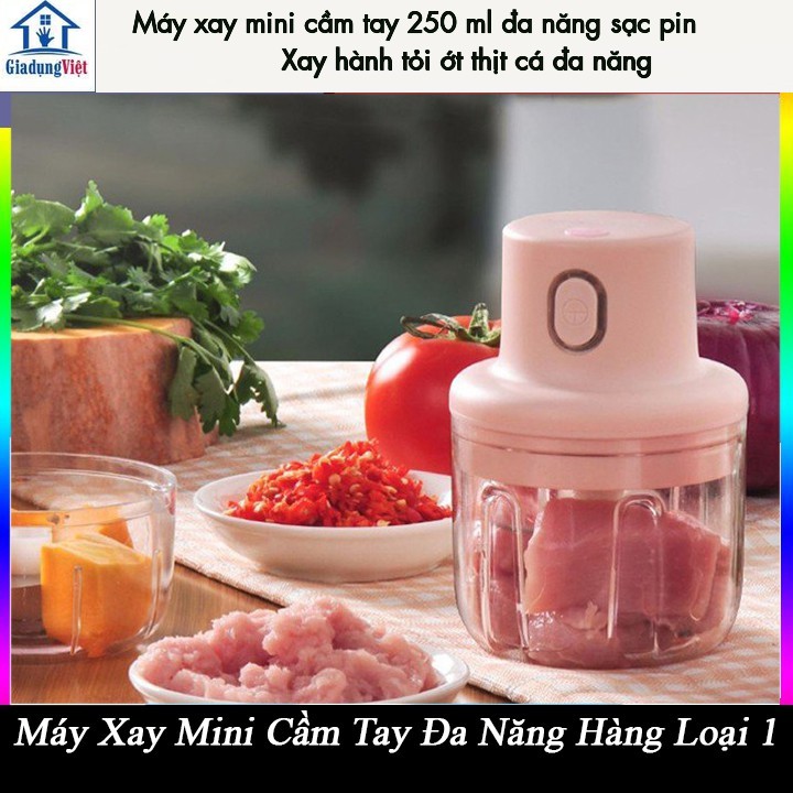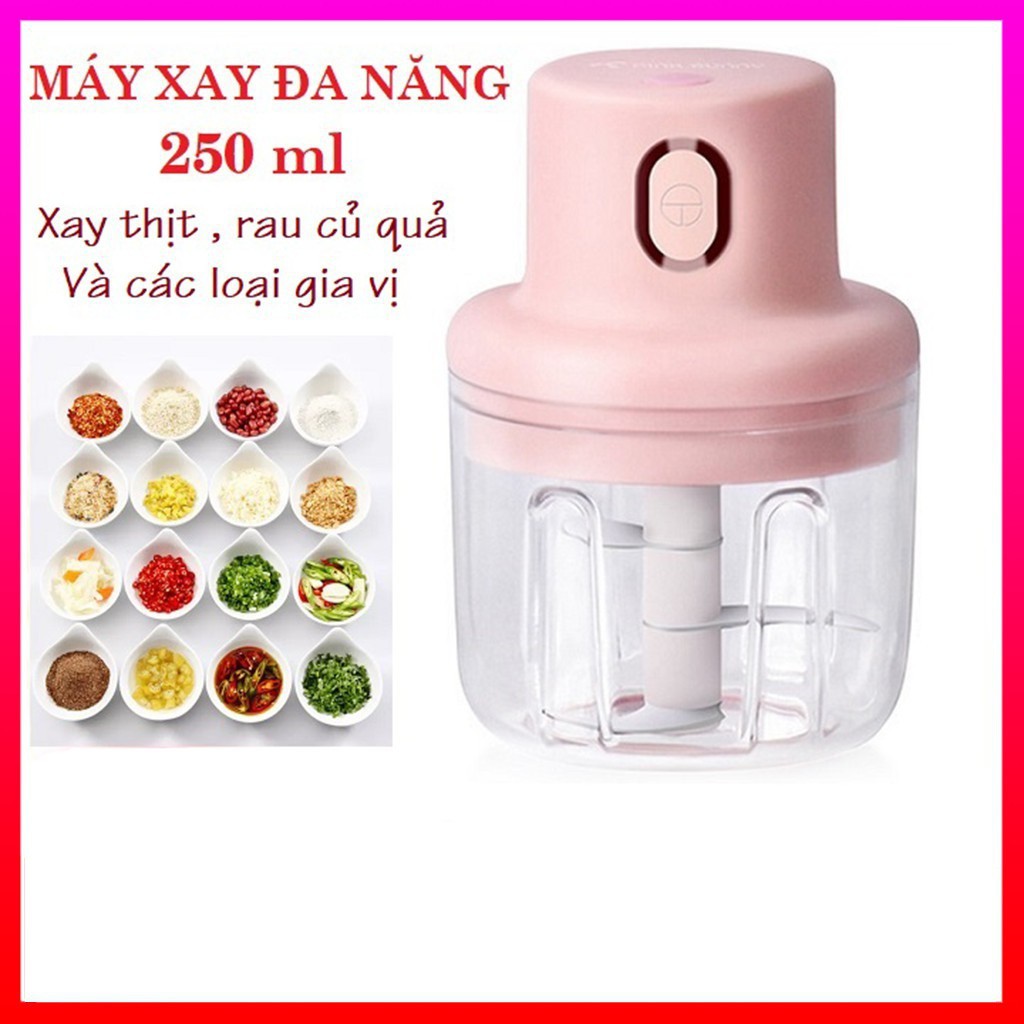 Máy xay mini cầm tay 250 ml đa năng sạc pin xay tỏi ớt xay hành hàng loại 1 màu hồng