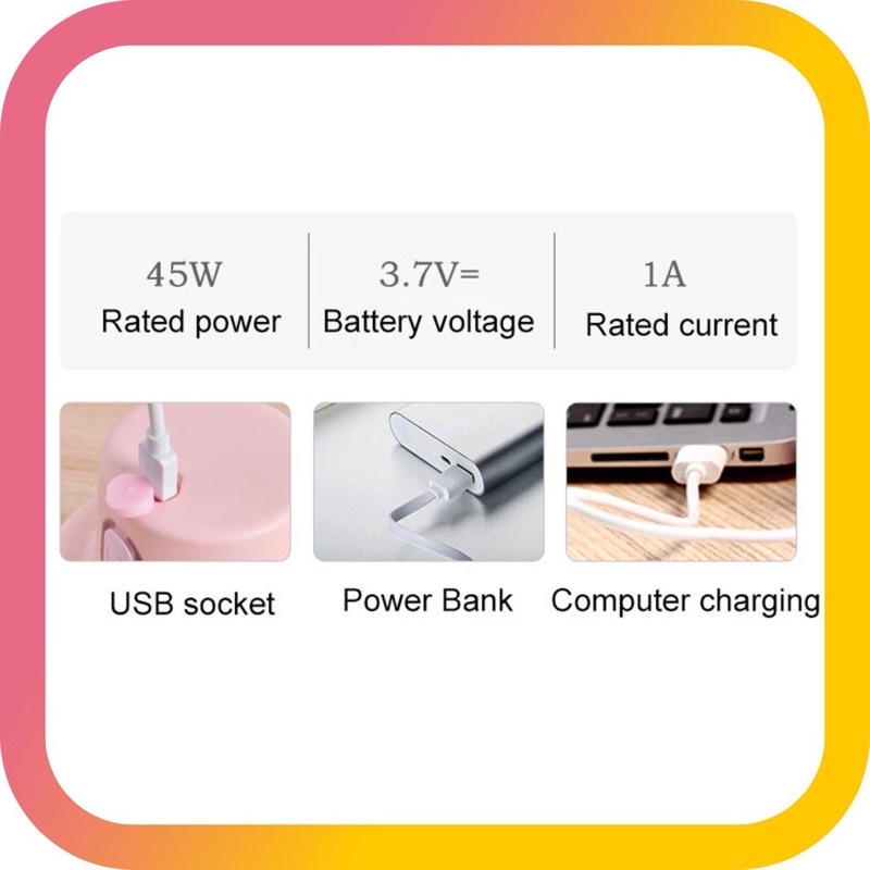 - Máy xay đa năng,xay tỏi ớt, xay thịt (thịt nạc, miếng nhỏ) , hoa quả sạc pin, giúp công việc nấu nướng của bạn trở nên dễ dàng, thuận tiện.
