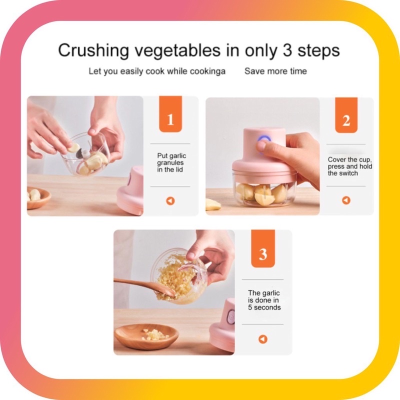 - Không chỉ sử dụng để xay tỏi ớt, dụng cụ có thể dùng để xay thịt, hành, ớt, gừng, sả, xay đồ ăn dặm cho trẻ