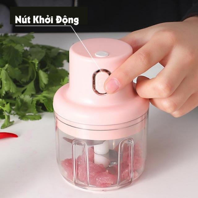 👉 Chỉ với 1 nút bấm mà thực phẩm được xay dễ dàng mà không cần cắm điện vì là máy sạc tích điện nên sau 1 lần sạc đầy là có thể dùng cho nhiều lần.
