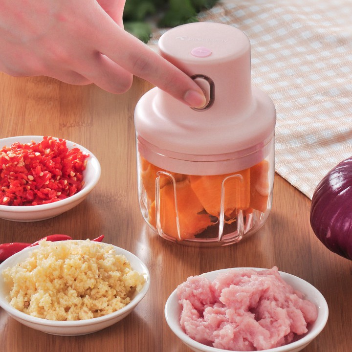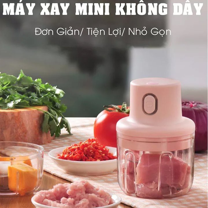 Máy xay mini cầm tay đa năng sạc pin cao cấp xay tỏi ớt, hành, rau củ quả dung tích 250ml