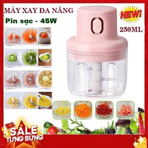 Máy xay mini cầm tay đa năng sạc pin cao cấp xay tỏi ớt, hành, rau củ quả dung tích 250ml
