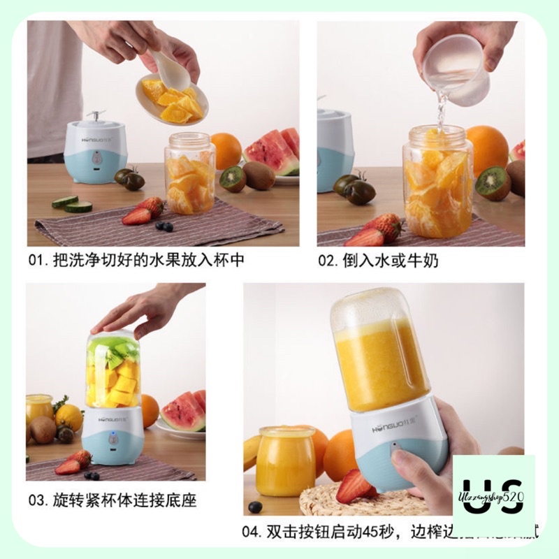 Máy xay mini cầm tay hai màu xanh hồng nhỏ gọn có thể mang theo Ulzzangshop520