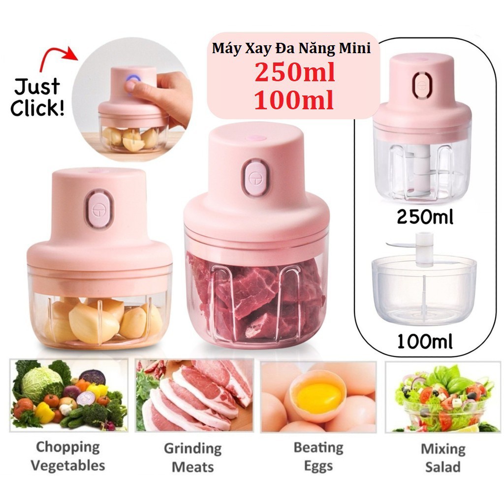 Máy xay mini cầm tay thích điện làm đồ ăn dặm cho bé dễ dàng xay thịt, gia vị tỏi ớt rau củ kèm dây sạc dung tích 250ml